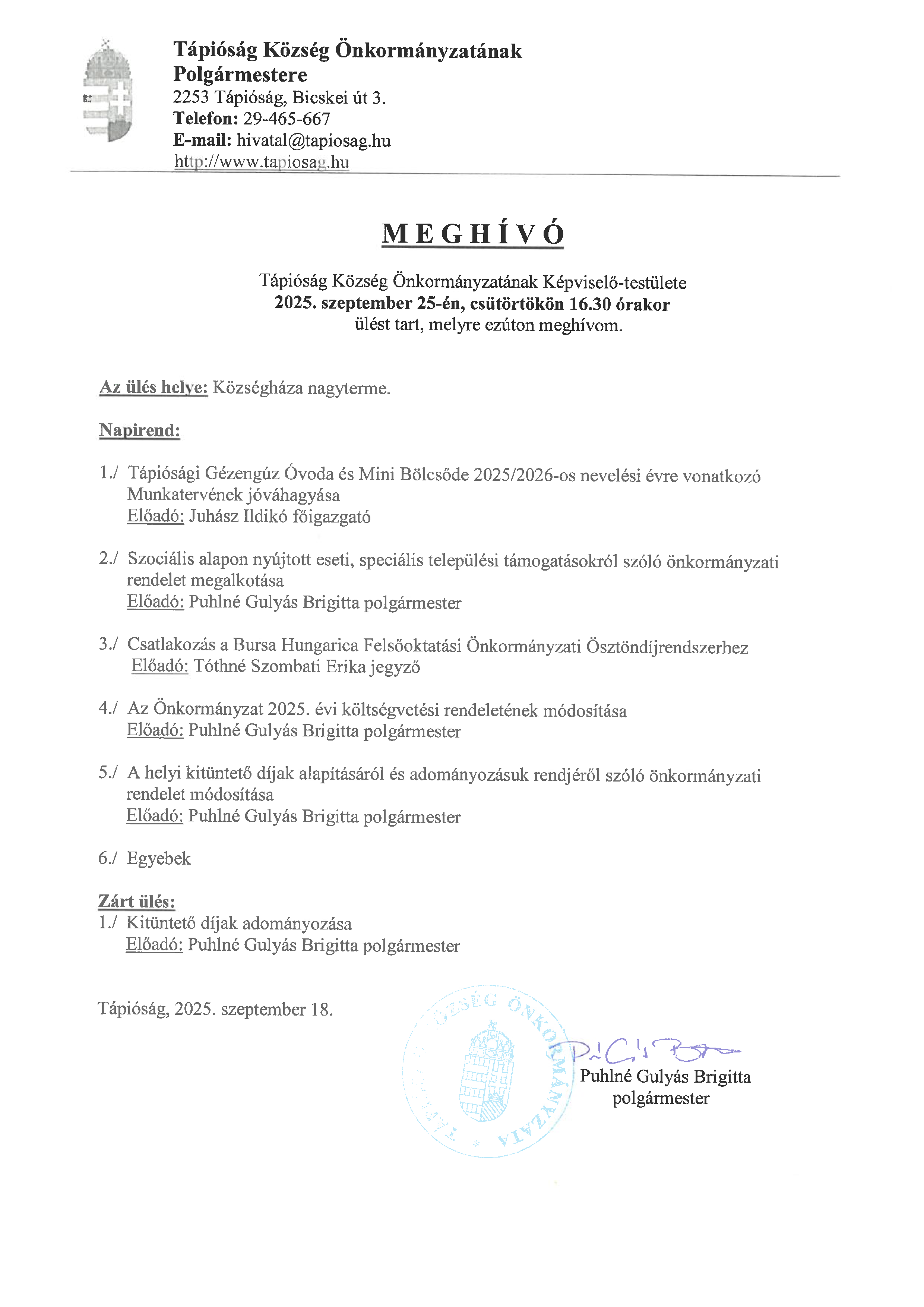 Tápióság Község Önkormányzatának Képviselő-testülete ebben az évben is csatlakozott a Bursa Hungarica Felsőoktatási Önkormányzati Ösztöndíjpályázathoz. A pályázat benyújtási határideje: 2025. november 4. |